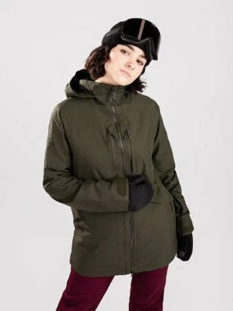 Het Volcom Shelter 3D Stretch Jacket voor dames biedt lichtgewicht isolatie voor koudere dagen en heeft een waterkolom van 15k en ademend vermogen. Dit betekent dat transpiratievocht snel wordt afgevoerd en vocht van buitenaf geen kans krijgt. Daarnaast zorgt het nieuwe Zip Tech® jack-to-pants verbindingssysteem ervoor dat poeder op de helling blijft en niet door je jas of broek dringt. Ventilatiespleten, zakken voor je duikbril, liftkaartje en om je handen warm te houden ronden het Shelter Stretch Jacket voor dames af. EigenschappenKap met brilklemmenZip Tech® jas-naar-broek verbindingCinch sluiting van de tailleband in de jaszakZip tag met noodfluitjeVentilatieopeningen met rits en gaasvoeringDeels gemaakt van Repreve® materialen