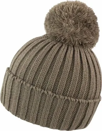 Over Result grof gebreide winter muts met pompon grijsbruin voor volwassenen wintermutsen voor dames heren