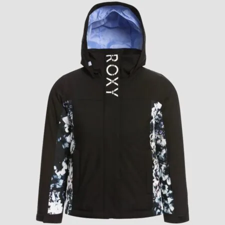 Over Roxy – Geïsoleerde sneeuwjas voor meisjes – Silverwinter – Zwarte bloemen – maat 158-164cm (13-14 jaar)